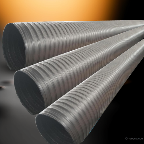 These products are manufactured from high-density polyethylene (HDPE) resin. The production process involves the use of an initial extruder to shape the sectional tube. This tube is then coiled on a winding machine while another extruder expels a stream of HDPE. Simultaneously, the stream is hot-melt welded and coiled, undergoing axial compression molding.